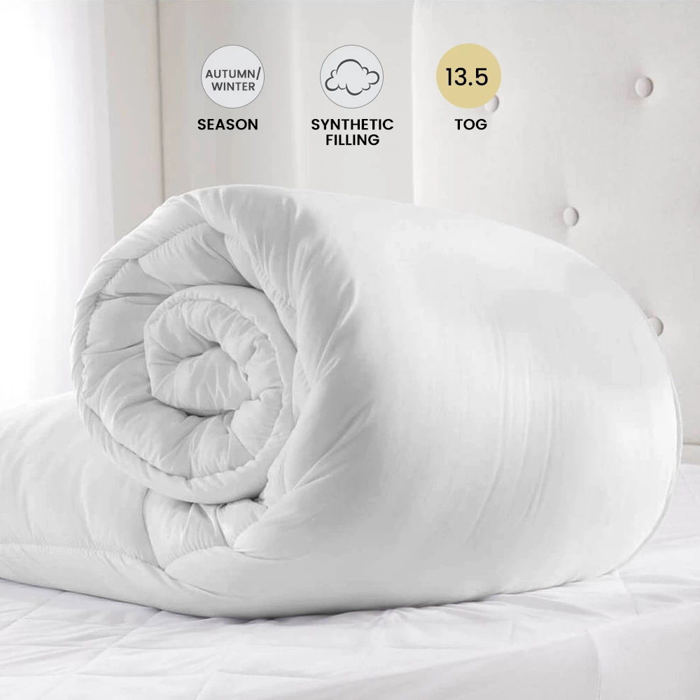 If you are living in an area with severe winters but with strong home insulation properties, then this tog duvet should be your prior choice. This soft, fluffy 13.5 tog duvet is bursting with a premium quality hollow fibre filling within the pure quality polyester fabric thatโs ideal for colder winter nights. Featuring a smooth, warm and finest finishing earns durability and the ultimate snug feel, this man-made highest quality duvet will keep you warm and snug. Make your purchase for this duvet tog today and spend your nights in luxury cosiness. This duvet tog is available for all standard size beds including single, double, king and super king.