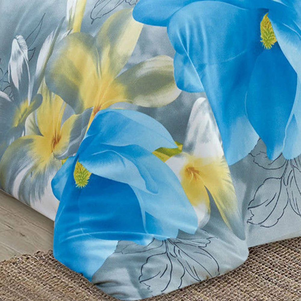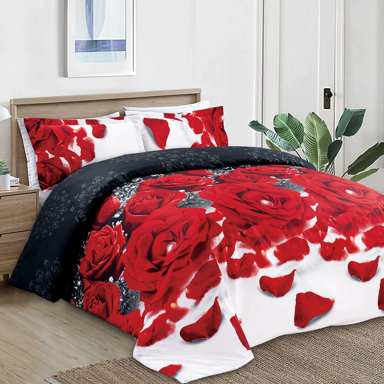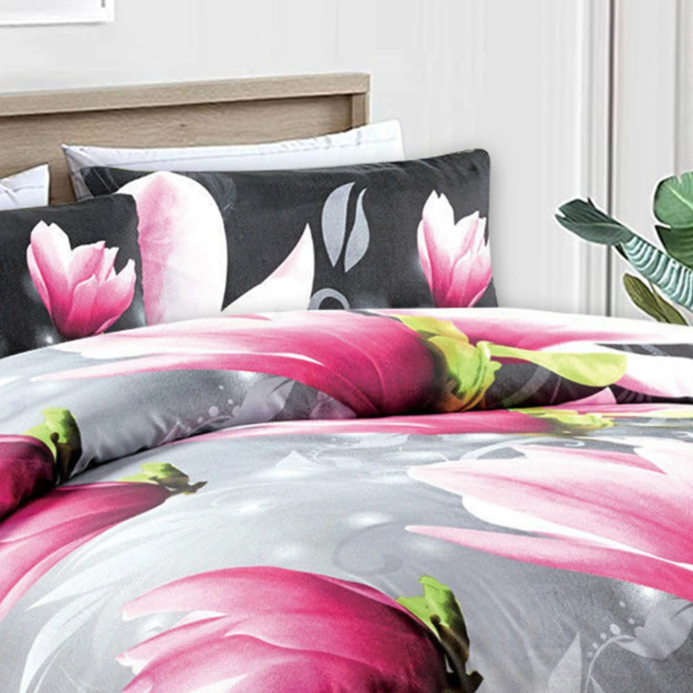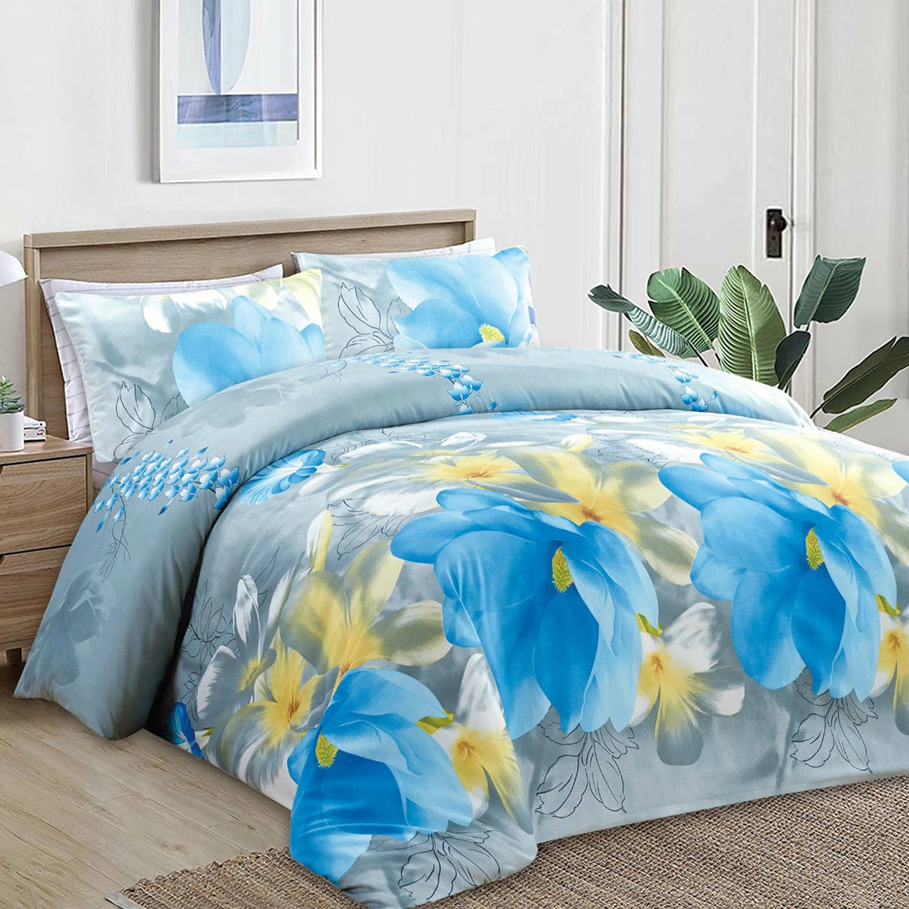 Elicit serenity and freshen up your bedroom with our newly introduced 3D Floral Printed Design Quilted Duvet Cover Complete Set. Beautiful Blossom Print in glorious and modern patterns, in eye-catching hues, will elucidate your bedroom into a perfect soothing sanctuary by injecting a slight drama with matching pillowshams and fitted sheets. Made from ultra-soft and superior quality microfiber, this microfiber 3D Floral Printed Duvet Complete Set is wrinkle-free, stain and fade-resistant. This exquisite Duvet Cover Complete Set is machine washable, making the care and maintenance effortless. The crisp, flawless quality of these sheets will gradually be softer with every wash. Button/popper closure permits you to put a duvet insert within this duvet cover easily.Â