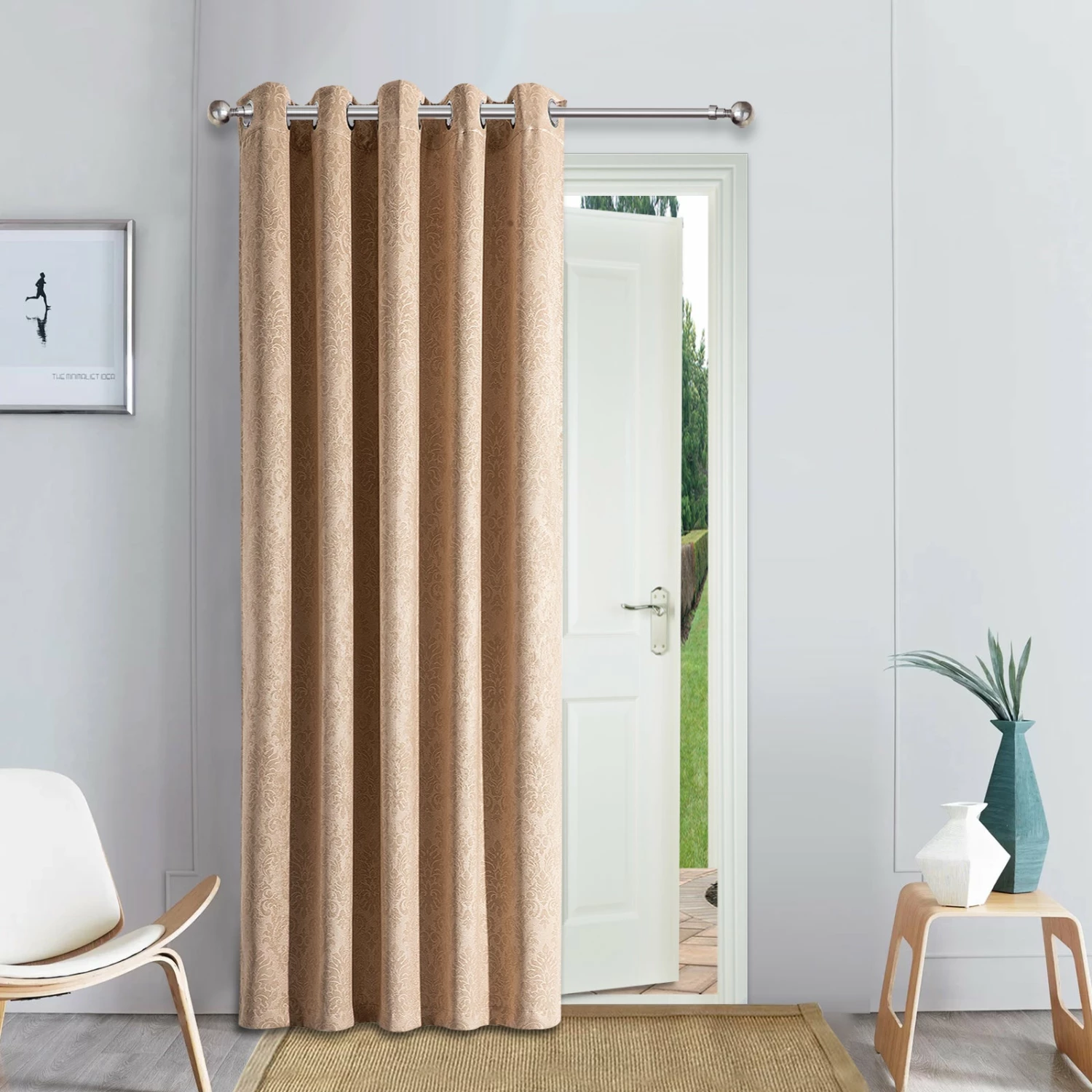 Embossed Blackout Eyelet Door Curtain by imperial rooms are fully lined thermal eyelet blackout curtains made from pure quality polyester 230 GSM with the top eyelet heading tape. We offer these blackout ready-made curtains that have been expertly designed using only the finest quality fabrics with elegantly embossed finishing to ensure that it’s not only long-lasting but also provide exceptional durability, whilst also supplying insulation against cold draughts and sunlight. These ready-made door curtains are single paneled and are available in over 4 classic colors that will suit any interior setting perfectly.ย
