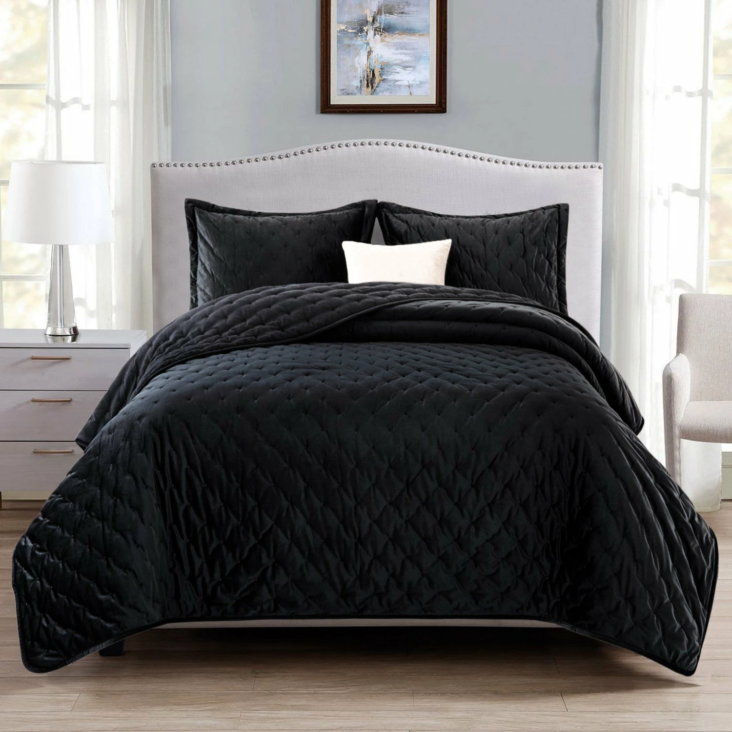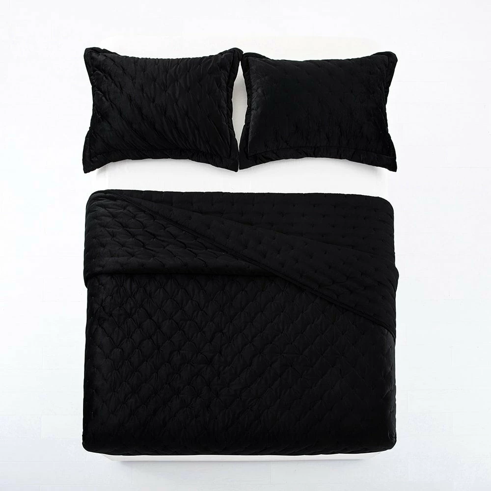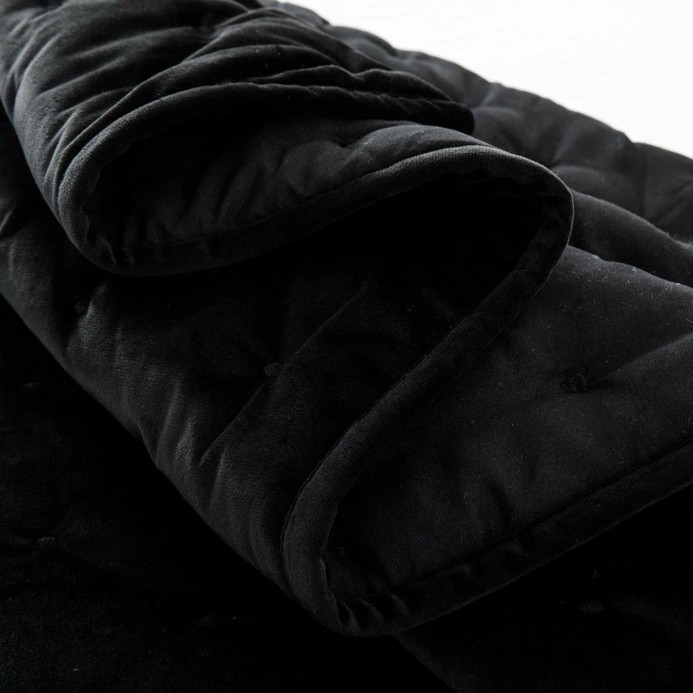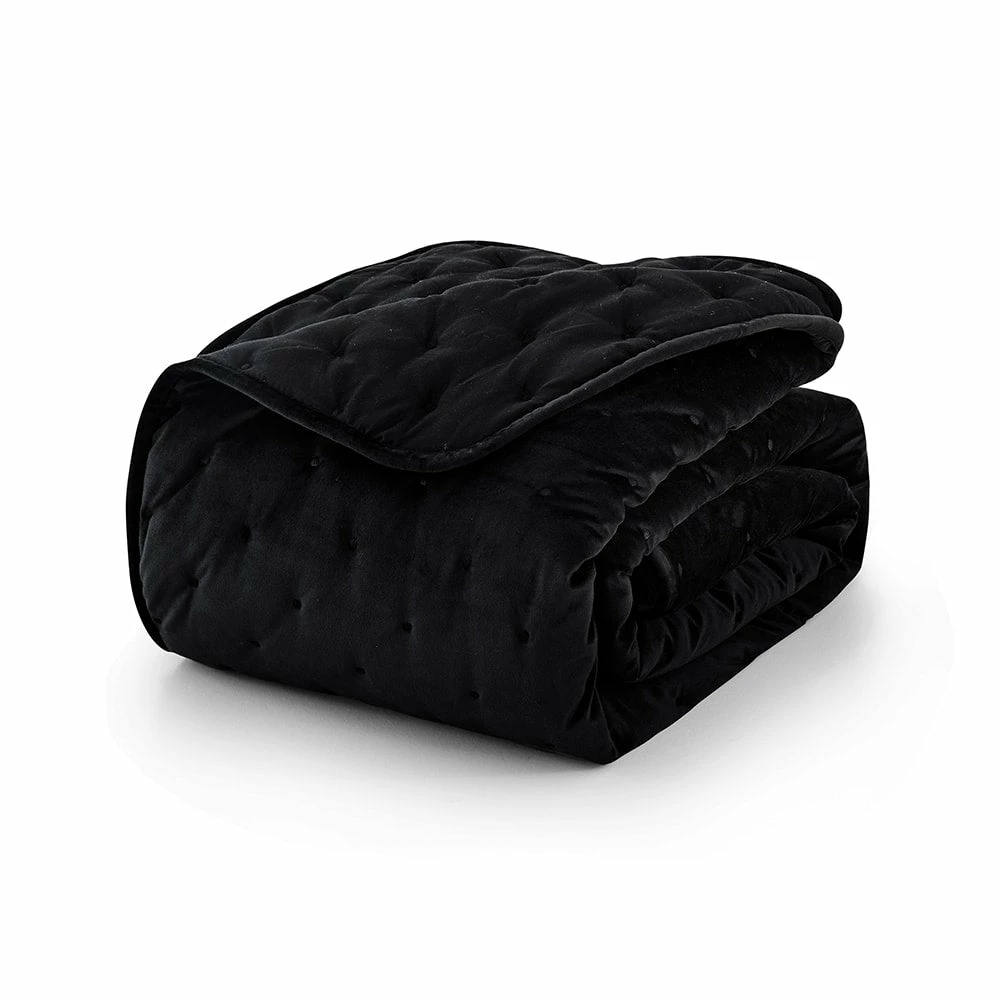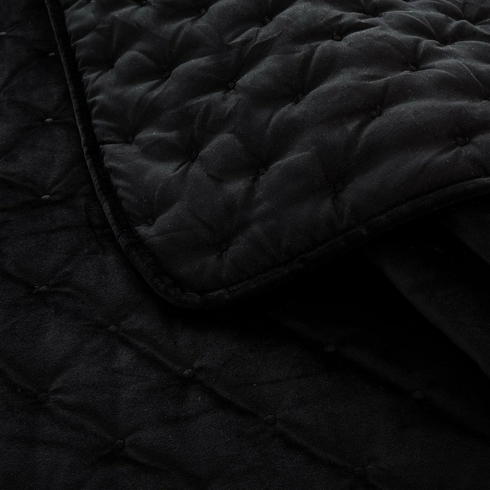 This luxuriant Black Velvet Bedspread from the epic collection of Imperial Rooms bedding will offer a timeless, majestic touch to the bedroom with the utmost warmth. Featuring a modernistic diamond quilt stitching on supreme quality crushed velvet fabric, this velvet bedspread gives a serene touch to your bedroom instantly. It does not only let you enjoy tranquil sleep but also can be put beautifully as a velvet comforter on the bed footboard when not in use.ย