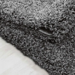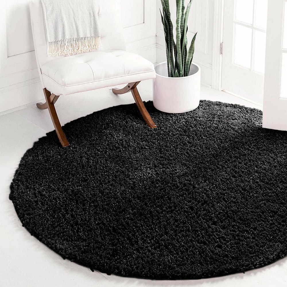 This iconic piece is a fantastic carved black round shaggy rug, featuring an ultra-cloud-soft high pile complemented by a captivating rounded dimension. A magnificent design piece, this fluffy circle rug bears a super soft touch underfoot making it everlasting and versatile.