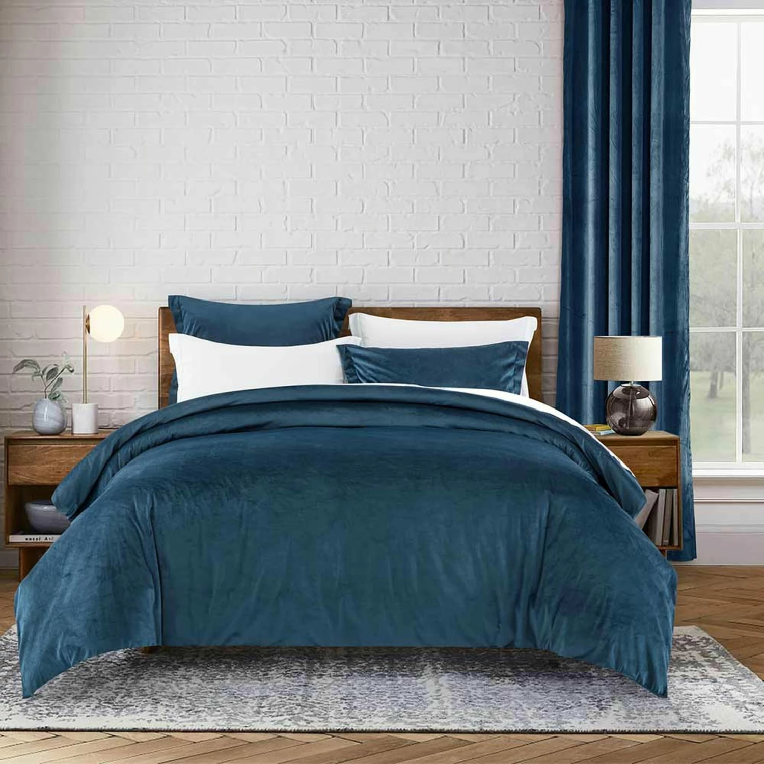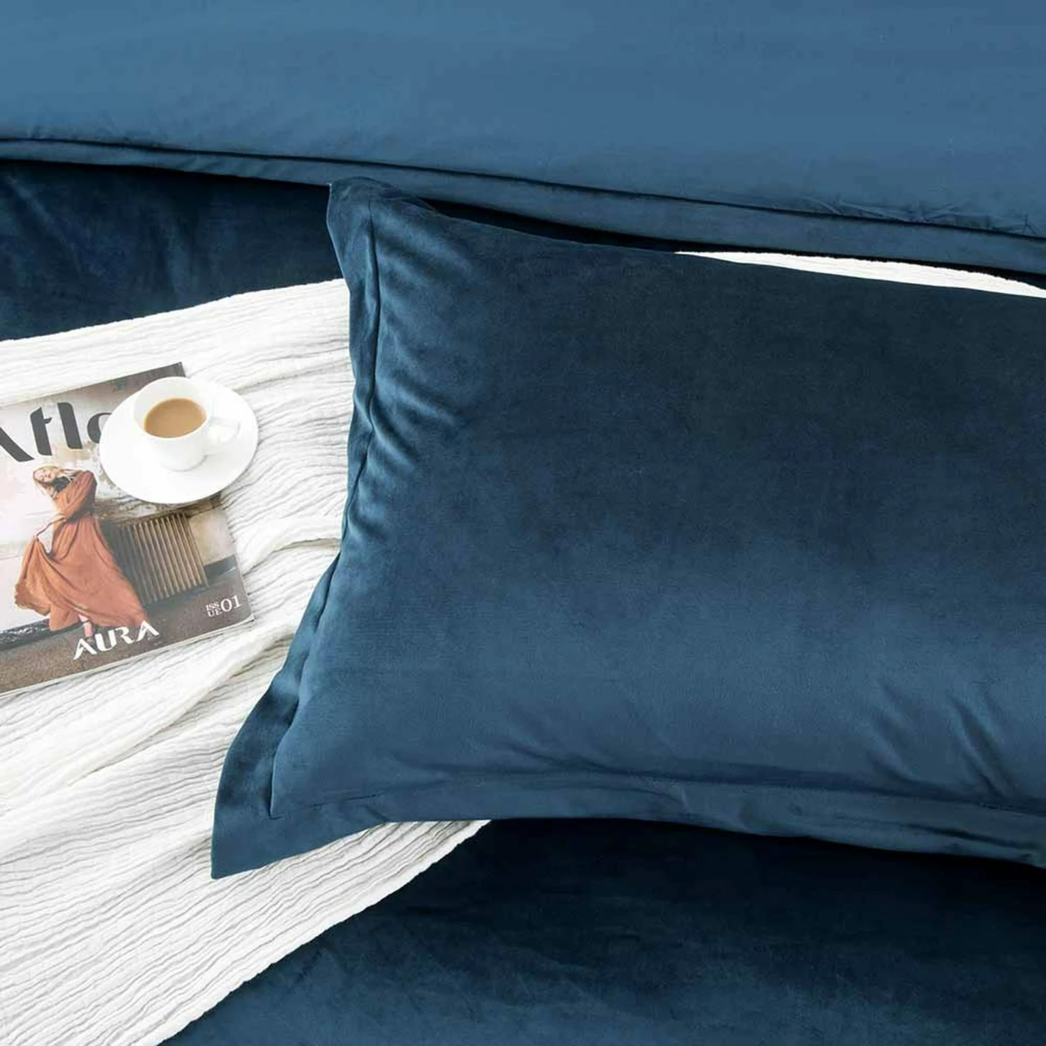 Blue Bedding Crushed Velvet Duvet Cover Set