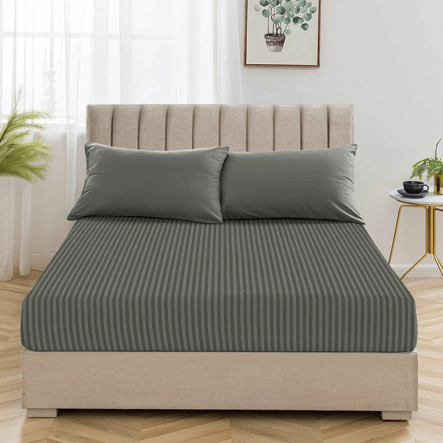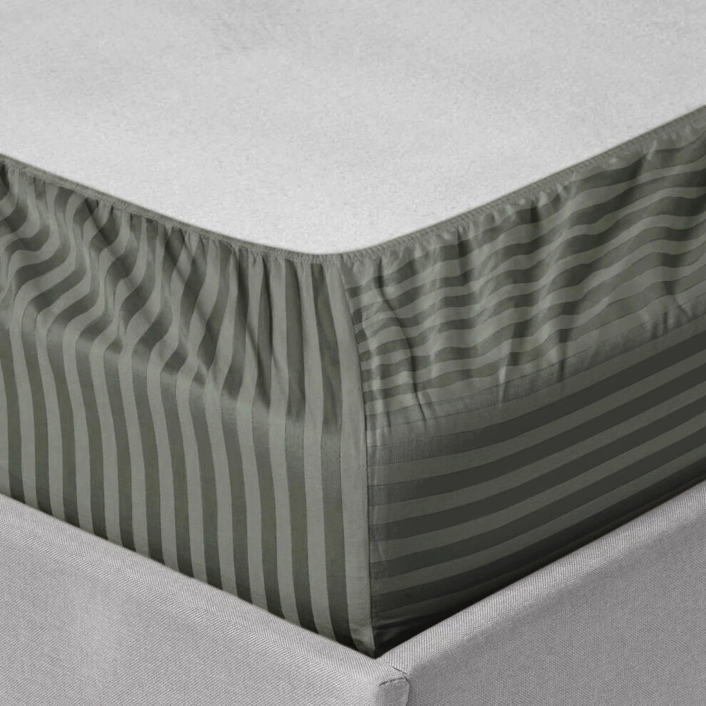 Cool and crisp, these new striped patterned >25cm fitted sheets make an updated addition to your bedding for the ultimate clean and comfortable feel. The sleek interpretation of the finest microfiber weave confirms the ultra-soft, classic and relaxed experience all night. The embedded striped design displays a symmetric accent in the bedroom. The strong elasticized corners at four corners are at 25cm depth to snug fit on the deeper mattresses. Accent pillows with the same striped design harmonize the bed base. What else? Our exclusive extra deep fitted sheets striped pattern are now available in stunning colours and standard bed sizes.ย