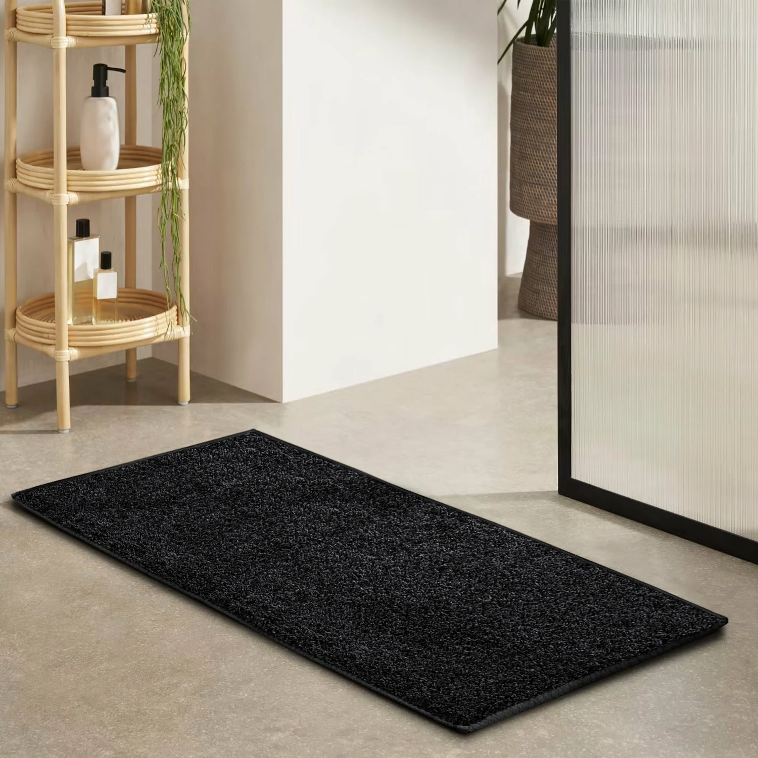 Door Mat Plain Shaggy Doorway Runner Black