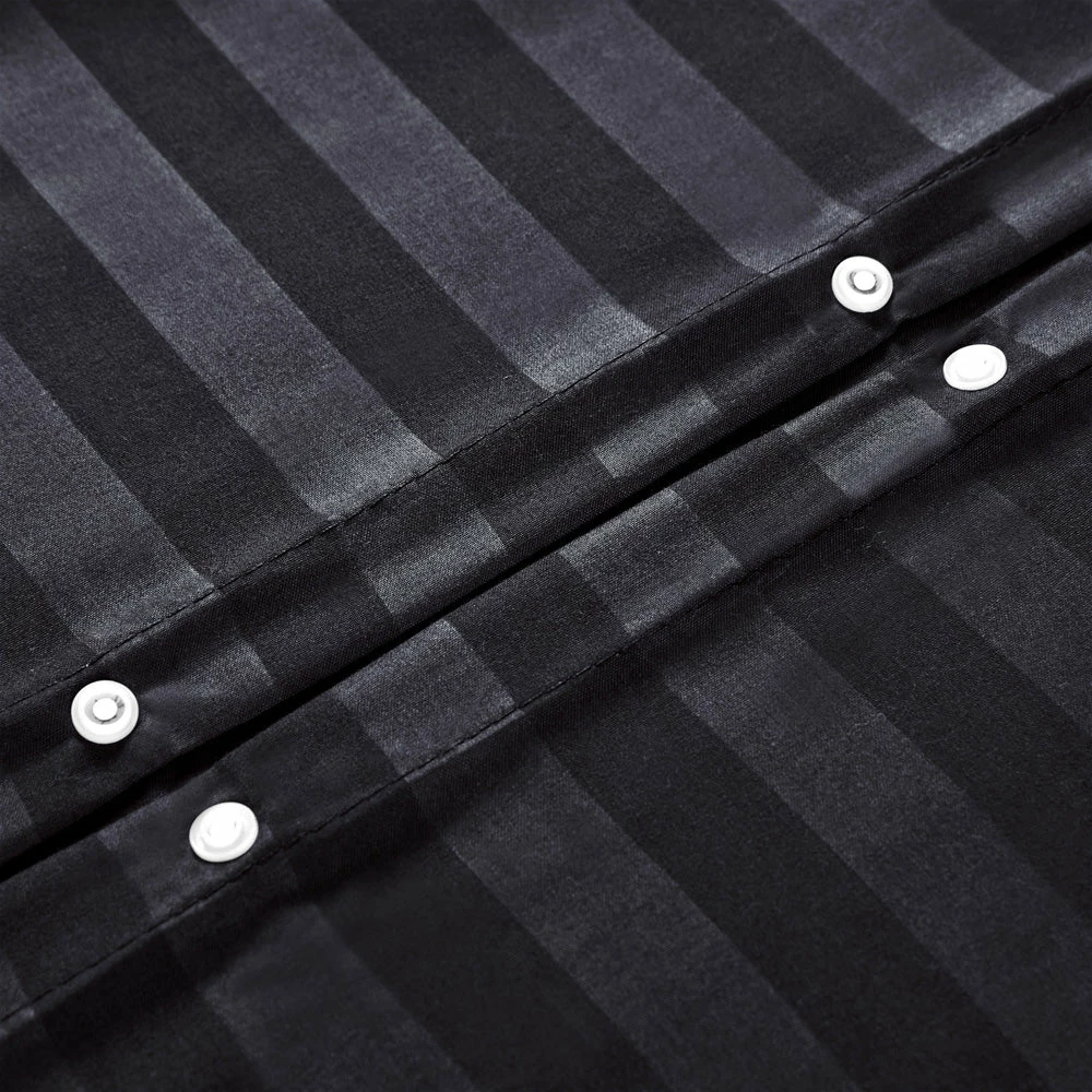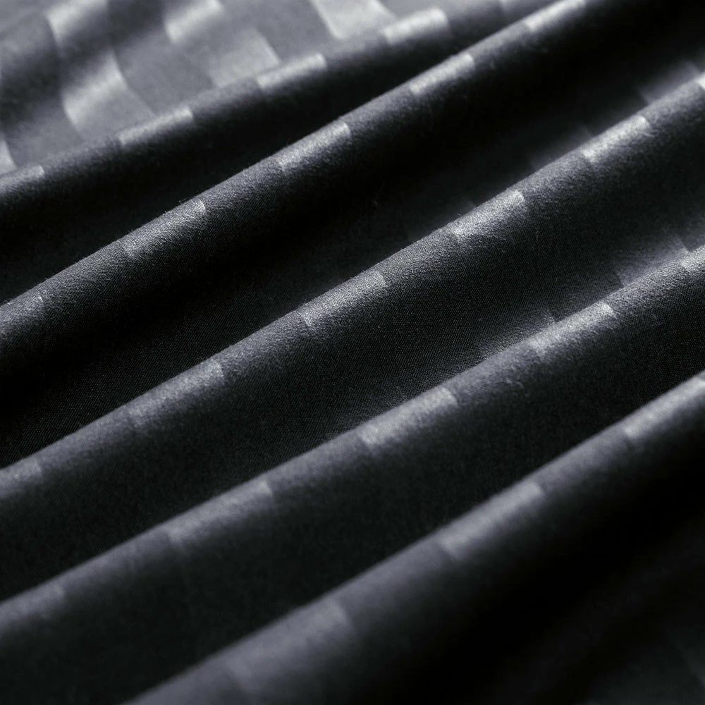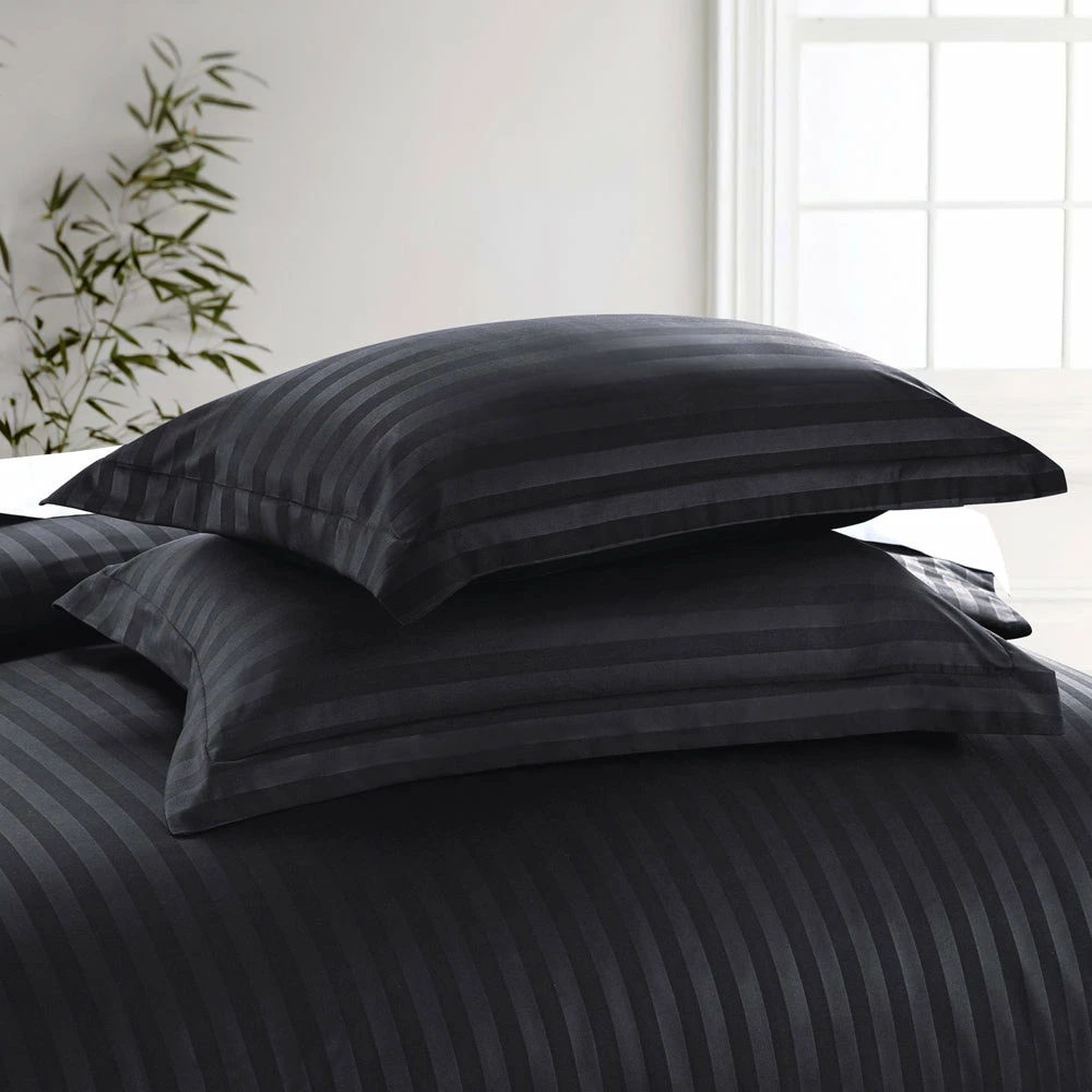 For a subtle and symmetric appearance in your bedroom, Imperial Rooms offers this exquisite strip bedding featuring shiny satin striped lines all over the plain microfiber that will add stunning dimensions to the place. This striped bedding duvet cover set might seem simple but it cast a layer of magnetic sophistication with its straight striking design. Its ultra-soft-to-touch fabric, precise stitching, hypoallergenic quality, gentle feel, and subtle look make it stand out. This outclass striped duvet cover is available in multiple sizes ranging from single to super king bed sizes. So, look no further to design your bedroom into an inviting abstract that represents true legacy and majesty.ย