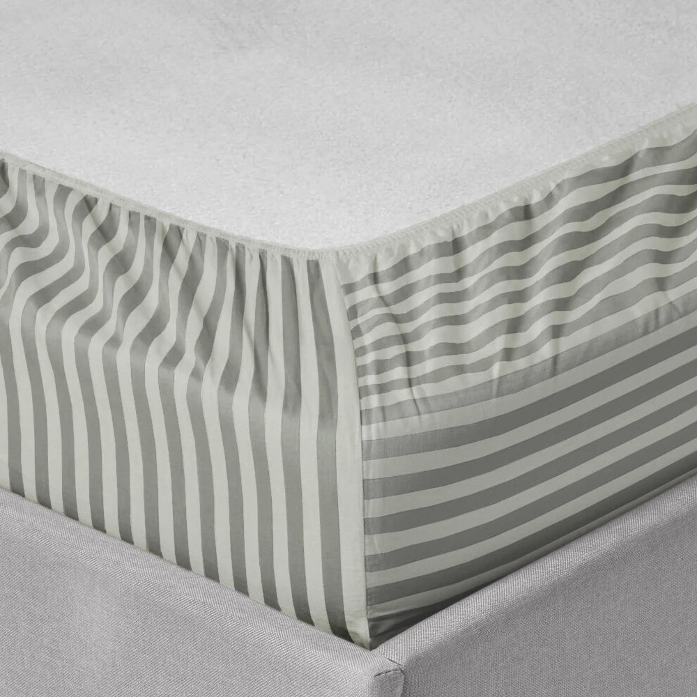 Cool and crisp, these new striped patterned greyย fitted sheets 25cm make an updated addition to your bedding for the ultimate clean and comfortable feel. The sleek interpretation of the finest microfiber weave confirms the ultra-soft, classic and relaxed experience all night. The embedded striped design displays a symmetric accent in the bedroom. The strong elasticized corners at four corners are at 25cm depth to snug fit on the deeper mattresses. Accent pillows with the same striped design harmonize the bed base. What else? Our exclusive extra deep fitted sheetsย striped pattern are now available in stunning colours and standard bed sizes.ย