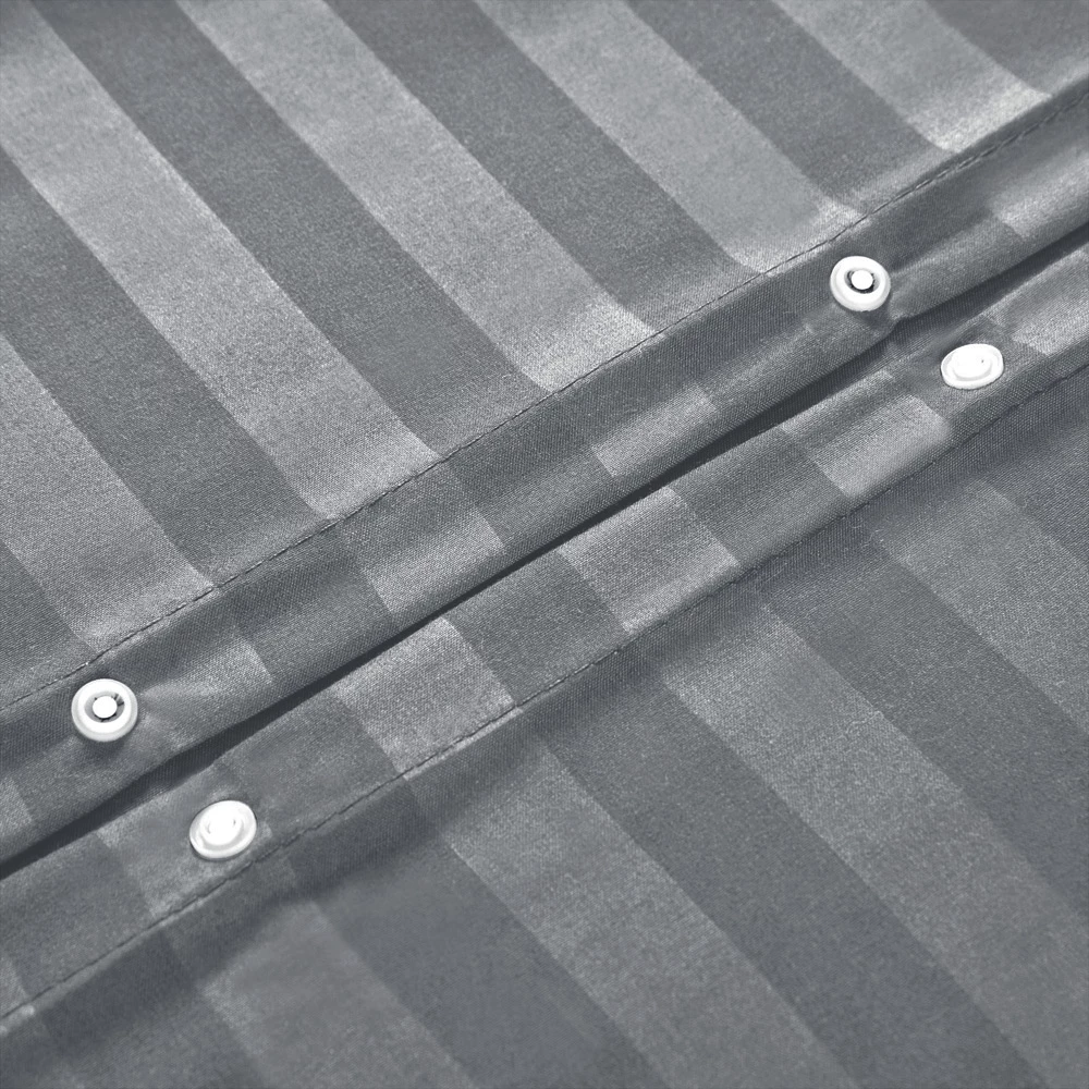 For a subtle and symmetric appearance in your bedroom, Imperial Rooms offers this exquisite strip bedding featuring shiny satin striped lines all over the plain microfiber that will add stunning dimensions to the place. This striped bedding duvet cover set might seem simple but it cast a layer of magnetic sophistication with its straight striking design. Its ultra-soft-to-touch fabric, precise stitching, hypoallergenic quality, gentle feel, and subtle look make it stand out. This outclass striped duvet cover is available in multiple sizes ranging from single to super king bed sizes. So, look no further to design your bedroom into an inviting abstract that represents true legacy and majesty.Â