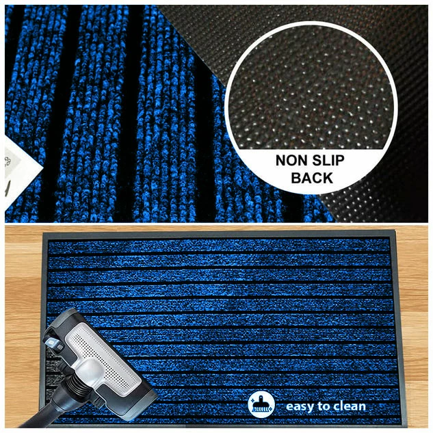 Imperial Rooms provides heavy-duty rubber-backed blue doormats that are ideal for indoor, outdoor, kitchen, side, front door, foyer, hall, patio, garage, laundry, bathroom, or any other area with a lot of foot traffic.