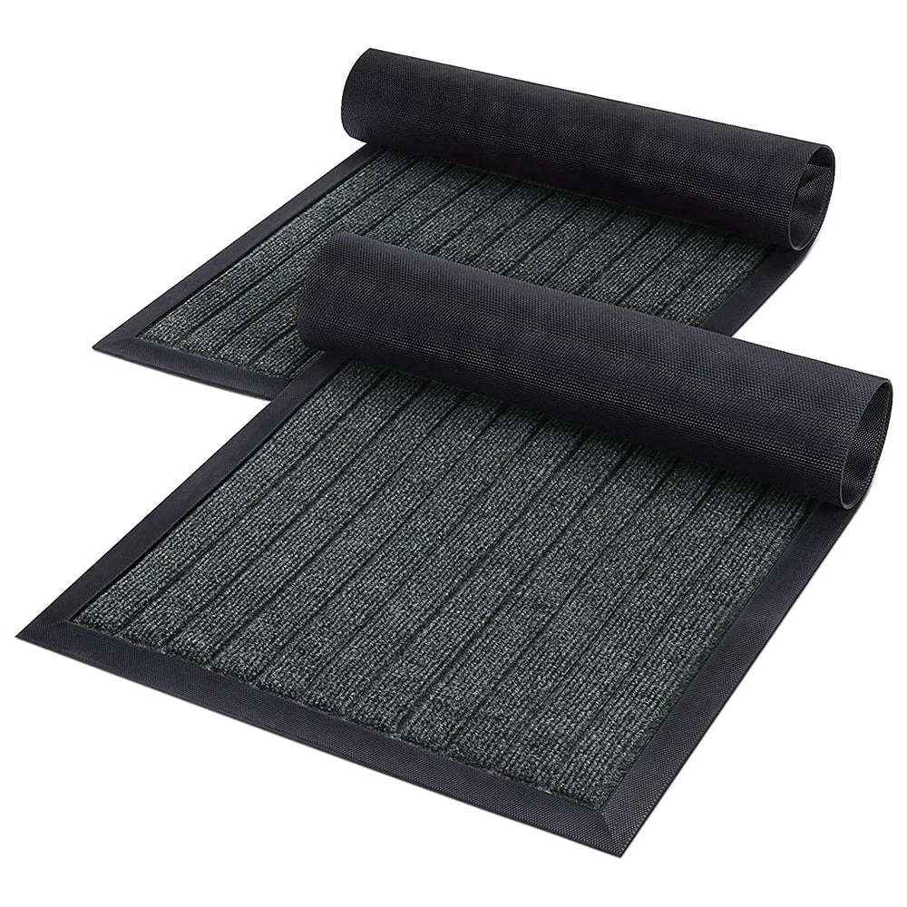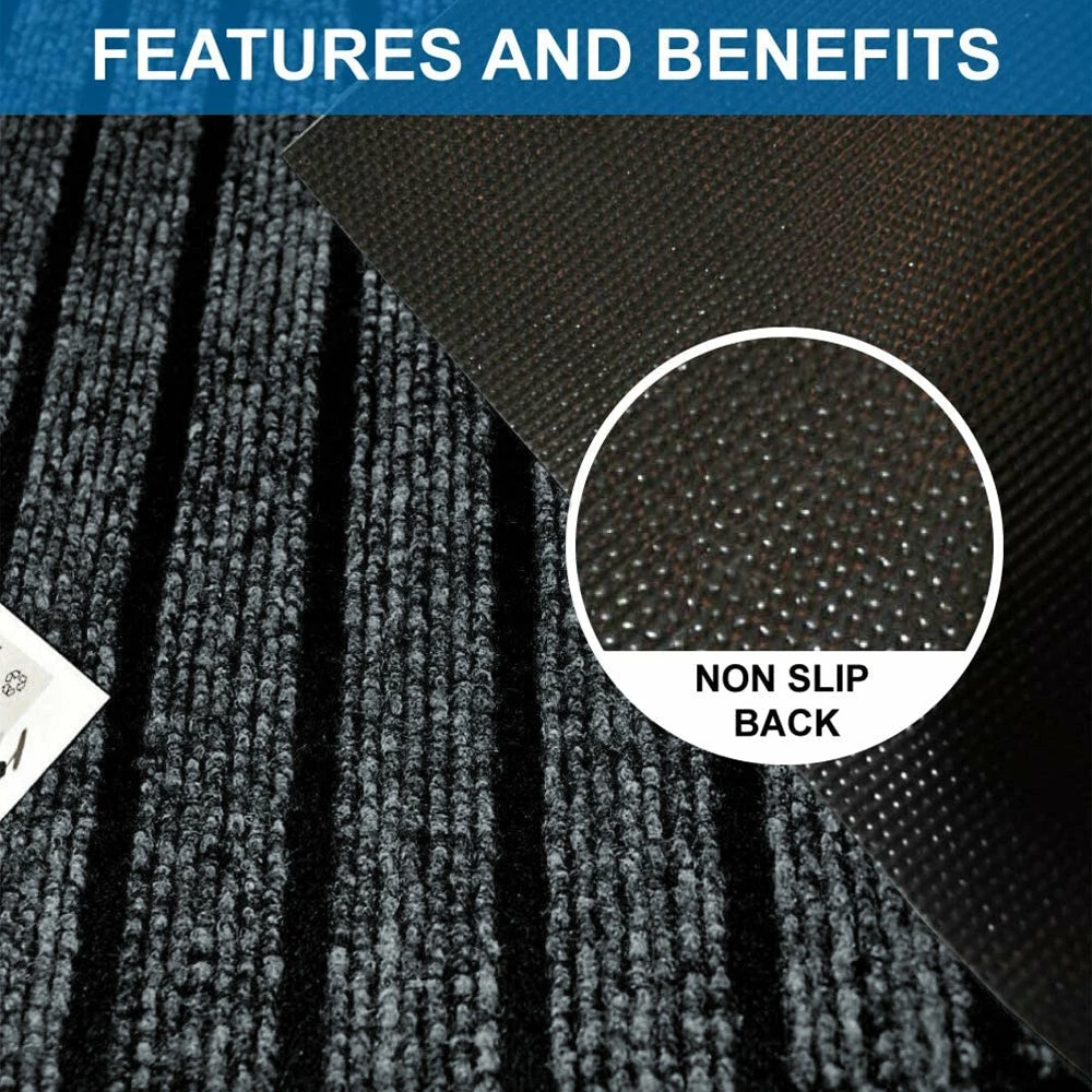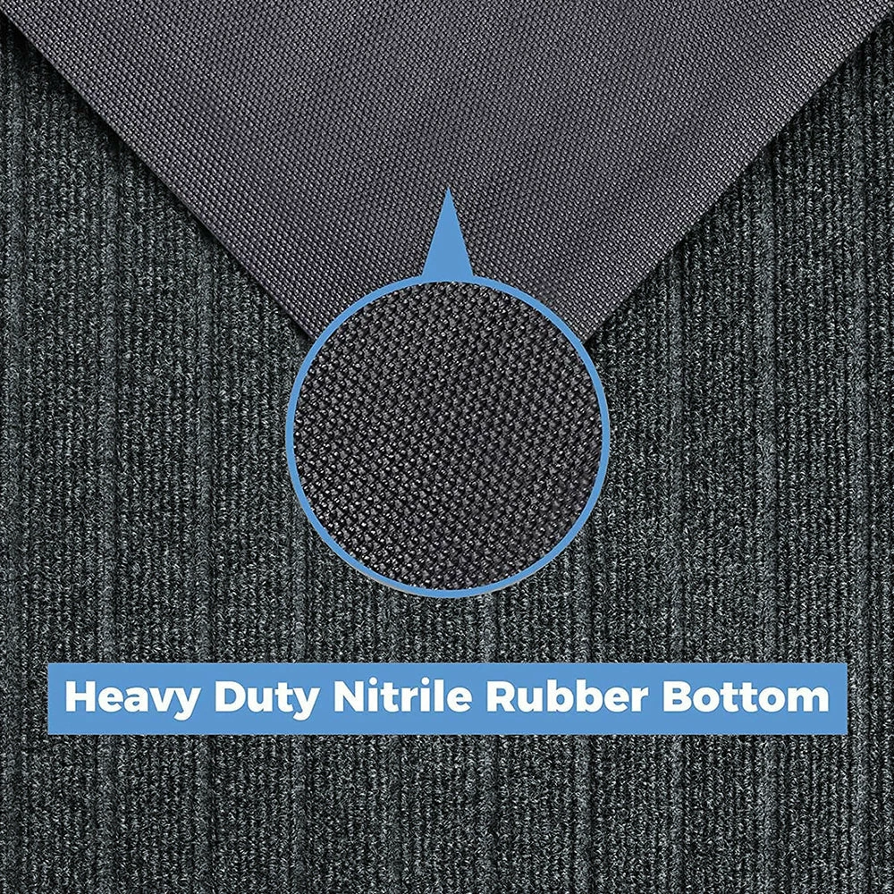 The ribbed surface of this grey non-slip rubber mat helps scrape dirt and other debris off your shoes, keeping your floors spotless. The rubber mats are premium PVC rubber and have a non-slip rubber backing that keeps them in place while preventing moisture leakage.
