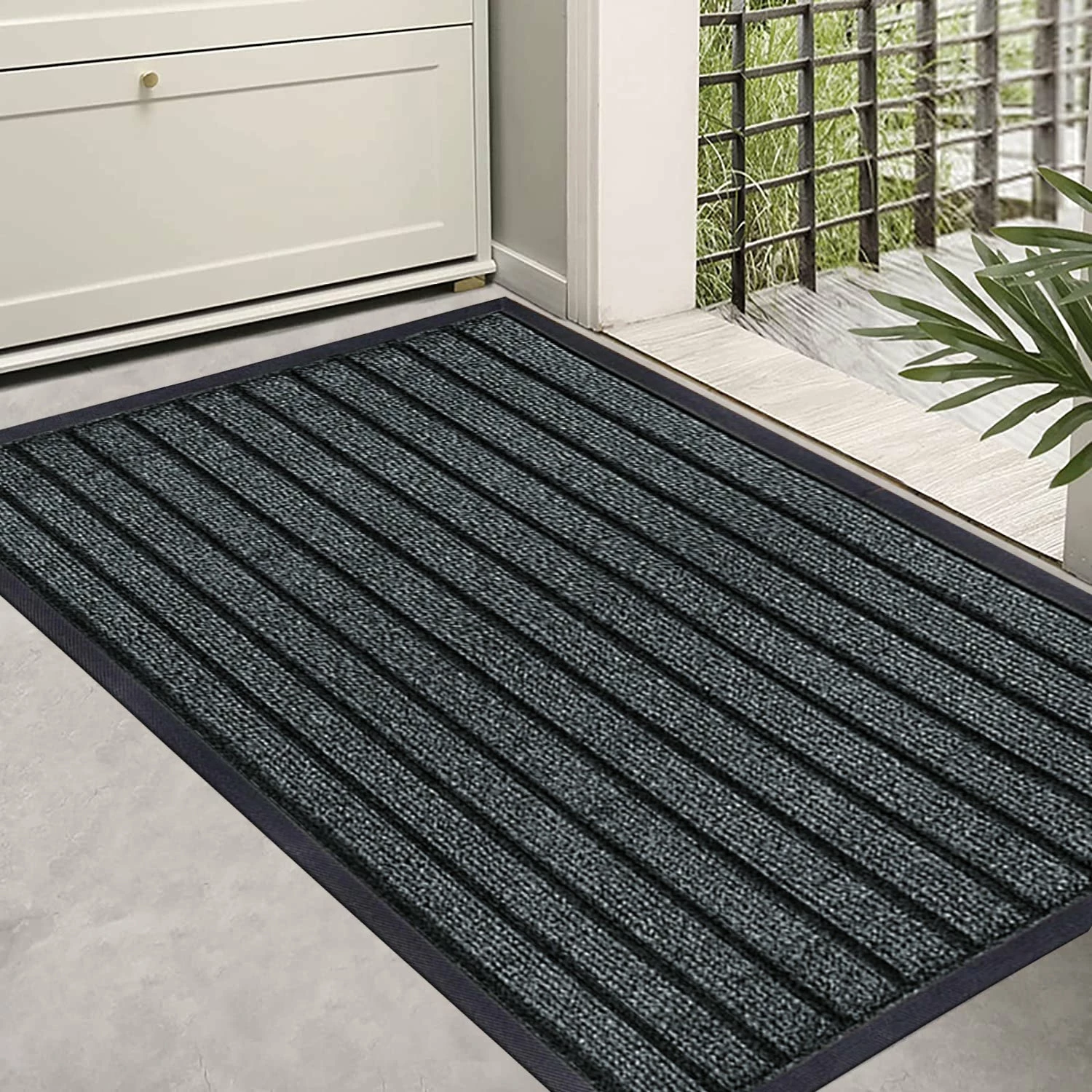 Our mat’s sturdy rubber-bevelled edge is intended to assist in creating a retention dam that will prevent moisture, dirt, and other nasty undesired material from entering your house.