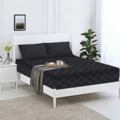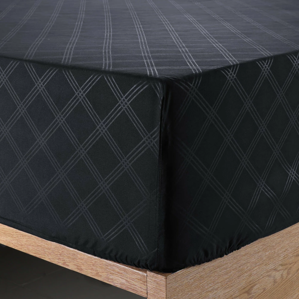 Single Bed Sheets 25cm Embossed Pattern Black Fitted Sheet