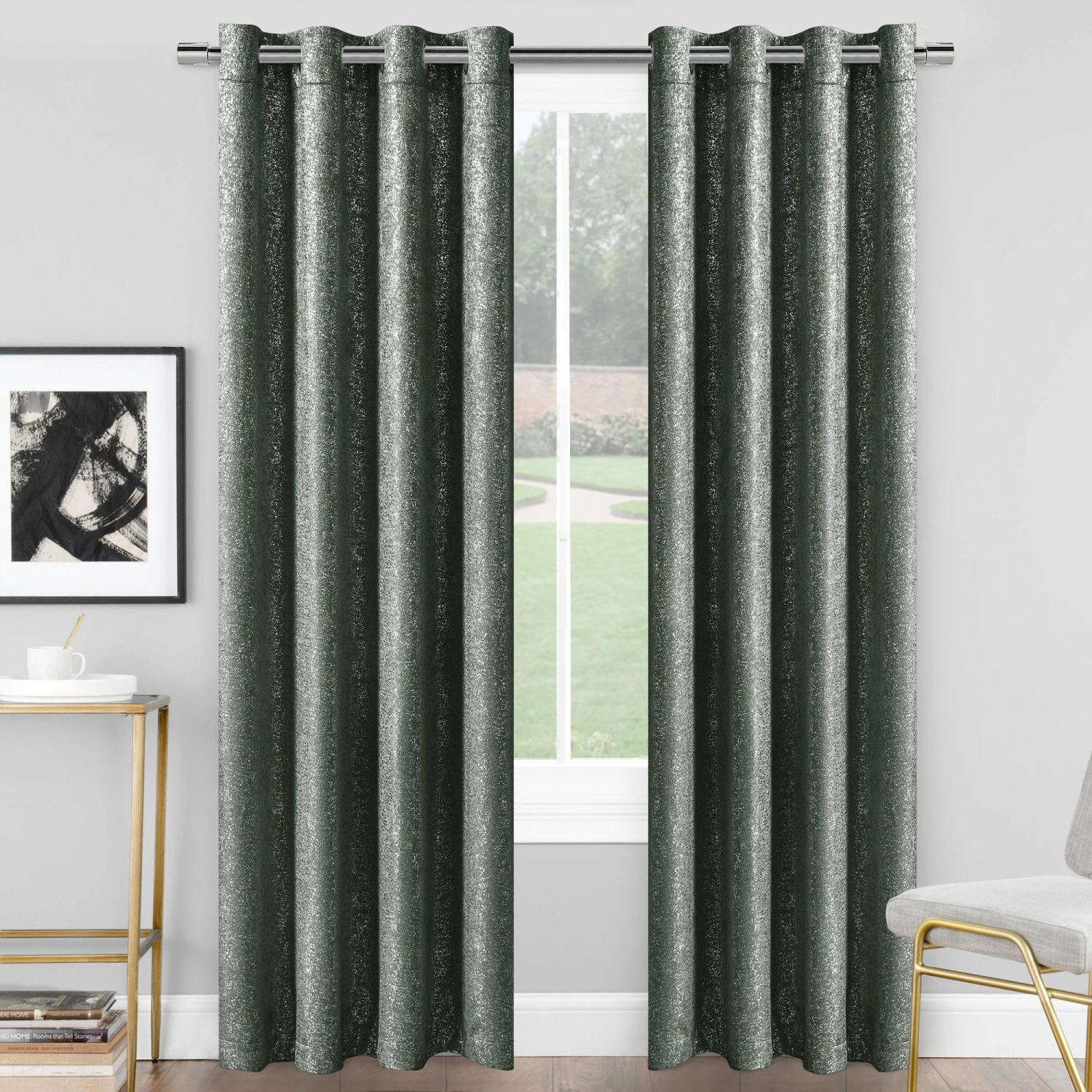 Build eye-catching appeal to your windows with these glitter sparkle blackout curtains by Imperial Rooms. Made from pure quality polyester with stunning glitter sparkle all over, these luxury ready-made curtains’ plush hand-feel and thermal blackout finishing give rooms warmth and richness while silencing noise and light. Featuring the beautiful eyelet heading style, these blackout eyelet curtains add a touch of luxurious texture to your window dressings in the bedroom, living room, or kid’s room. Available in classic colors and variable sizes, making them a perfect fit in any room.