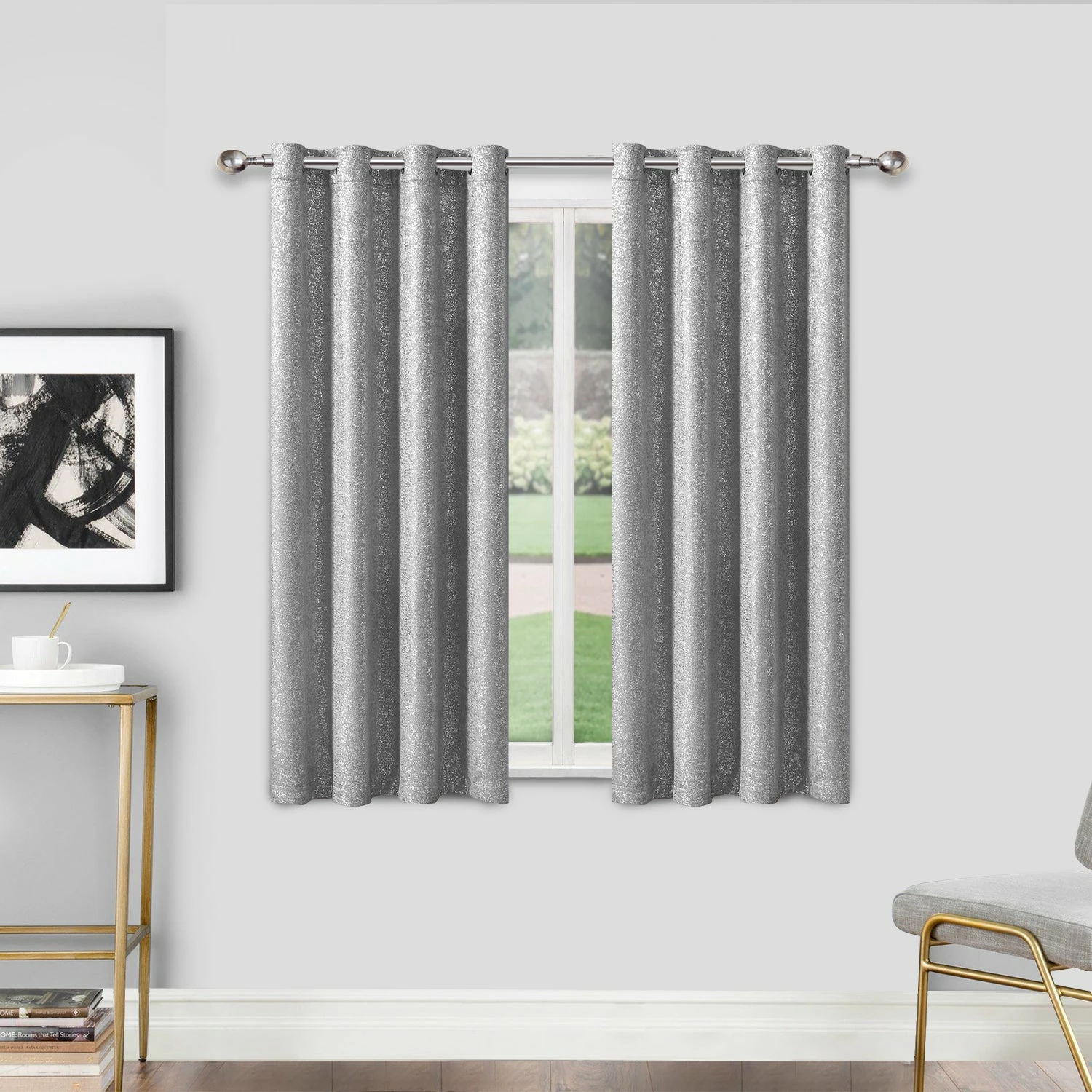 Build eye-catching appeal to your windows with these glitter sparkle blackout curtains by Imperial Rooms. Made from pure quality polyester with stunning glitter sparkle all over, these luxury ready-made curtains’ plush hand-feel and thermal blackout finishing give rooms warmth and richness while silencing noise and light. Featuring the beautiful eyelet heading style, these blackout eyelet curtains add a touch of luxurious texture to your window dressings in the bedroom, living room, or kid’s room. Available in classic colors and variable sizes, making them a perfect fit in any room.